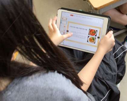 「竹村万博をひらこう」をテーマに、グループごとに世界の食や産業技術、文化などを調べでいます。国際理解につながる学びです。