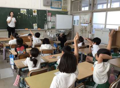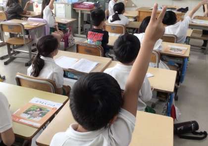 かめ、あひる、はくちょう、りすが出てくるお話で、泳げないりすさんの気持ちを考えました。友だちとのかかわりかたを振り返りながら、児童たちは自分の考えを伝えていました。