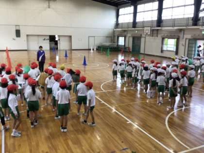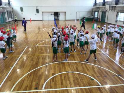 競技の練習をしています。全クラスがゴールしてから、結果発表までの動きも確認しました。
