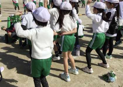 応援席で一緒に体を動かしながら、他学年のダンスを観覧している児童もいました。