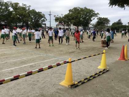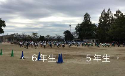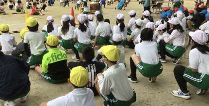 演舞の最終確認をしました。来年のために5年生が真剣に見ています。竹村ソーランでは、迫力のある動作と掛け声を披露します。隊形移動にもご注目ください。