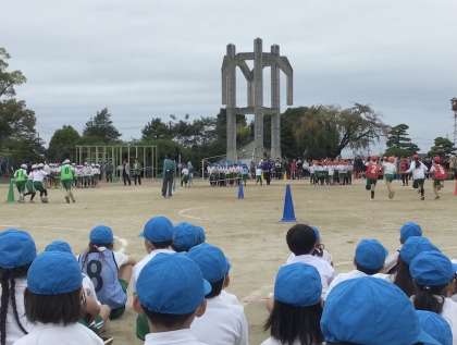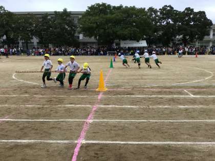 棒をしっかり握り、どのクラスも息を合わせてチームワークよく走りました。