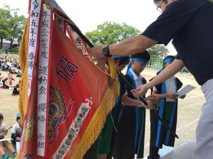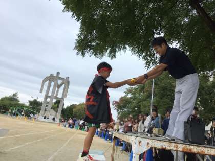 表彰式です。各学年の表彰と竹村小学校の児童全員に「輝け!チームの一番星」のテーマのもとに頑張った証の一番星を代表児童に渡しました。これからも、一人一人の輝きを大切にしていきましょう。
