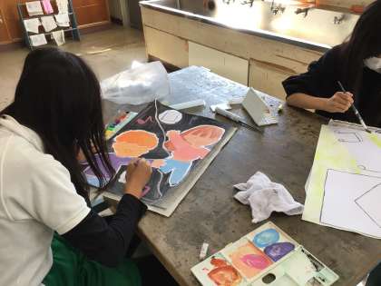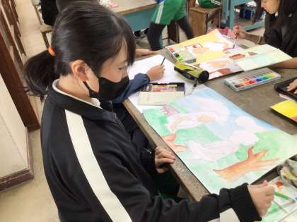 読書感想画の作品づくりです。友情と成長の物語から、自分が印象に残った場面を取り上げて作品づくりをしています。