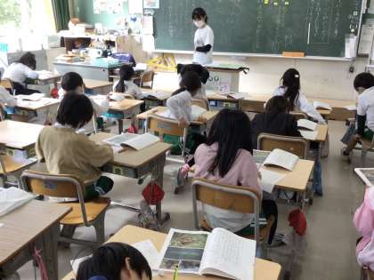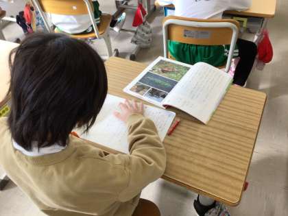 ビーバーの生活を書いた説明文を学んでいます。「ビーバーはどうやって木をきりたおすか」「ビーバーは切りたおした木をどうやってはこぶか」などを文章から読み取りました。読解力を高める授業です。