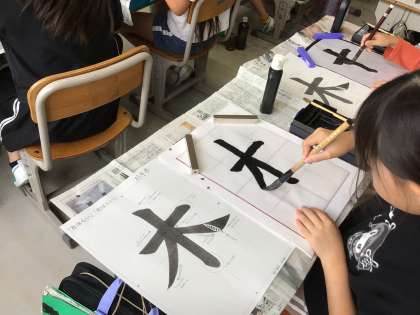 課題は「木」です。最初に動画やお手本でポイントを確認し、数枚練習してから清書をしました。