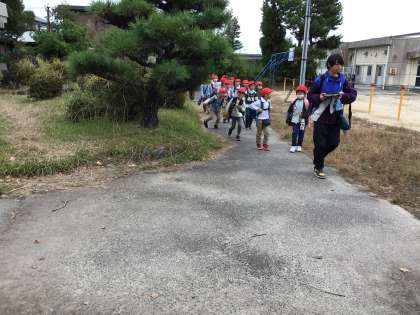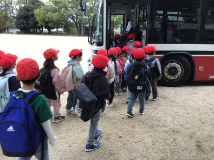朝、廊下に並んでいる学級がありました。今からトヨタの森へ出かけるところでした。たくさんの自然とふれあってきます。