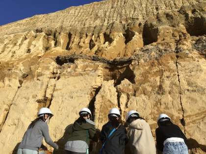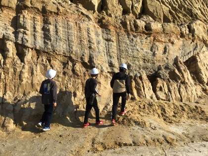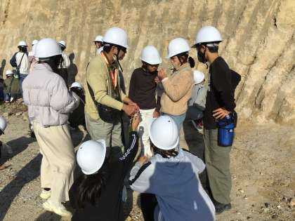 現地では、地層を作っている岩石や鉱物をとよはくパートナーの方に尋ねている児童もいました。豊田市の地層の現場を管理してくださっている会社の方にもご協力をいただきました。ありがとうございました。今回の博物館のアクティブ・ラーニングツアーを通して学んだことを豊田の土地の変化を推測する学習につなげていきます。