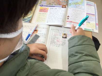 徳川家康の人物像を考える授業です。家康に関わる合戦や大名などから見えてきた人物像を発表し合いました。児童のノートには、資料集の付録についている家康のシールが貼られていました。文字だけではないノート作りも学習の意欲を高めます。