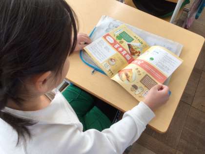 朝の会で「げんきごはん」の冊子が配付されていました。ご家庭で、お子様と一緒にご覧ください。学校生活を元気にすごすために、「早寝、早起き、朝ごはん」が大切という言葉を聞いたこともあります。