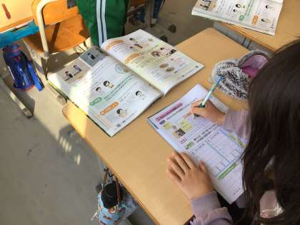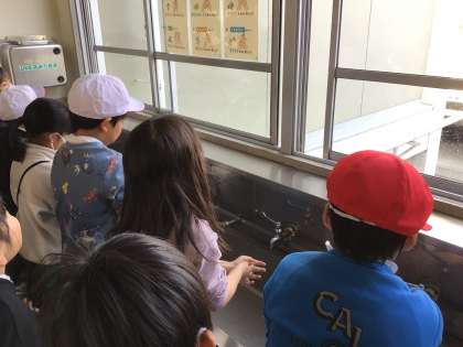 日なたと日かげの温度の違いの測定を終え、運動場から児童たちが戻ってきました。外から帰ったら、手洗いを励行しています。手洗いを終えた児童は、教室に戻って実験の結果を理科ノートにまとめています。