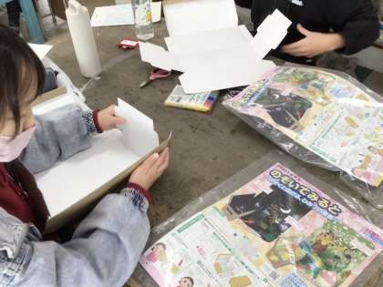 「のぞいてみたら」の作品作りです。のぞくと広がる世界をイメージスケッチに描き、それをもとに作品を作っていきます。児童たちがつくり出す空間には、どんな景色が広がっているのか、作品の完成が楽しみです。
