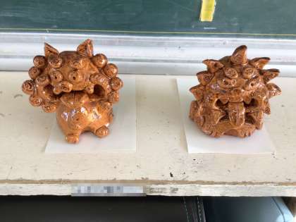 講師の方に教えていただいて作ったシーサーが焼き上がり、完成しました。個性あふれるシーサーたちです。守り神として、みんなの幸せを守ってくれます。