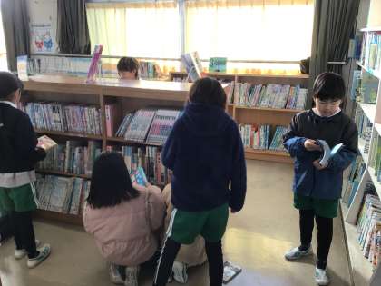 冬休みに読みたい本を探しています。一人、2冊まで借りることができます。