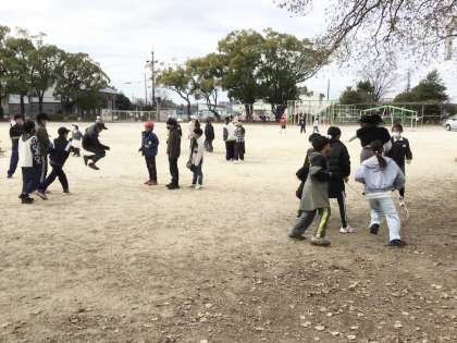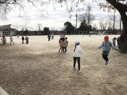 寒さに負けず、運動場でなわとびや大縄、鉄棒などで体を動かしています。冬休みも元気に過ごしましょう。