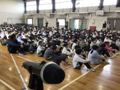 冬休み前の全校集会では、「こども乗りものデザイン展」の主催者の方から受賞した児童の表彰をしていただきました。また、全国大会で活躍した児童の教育委員会表彰も行いました。その後、冬休みの生活で期待していることや健康で安全な過ごし方のお話を聞きました。1月に、元気なみなさんと再会する日を楽しみにしています。