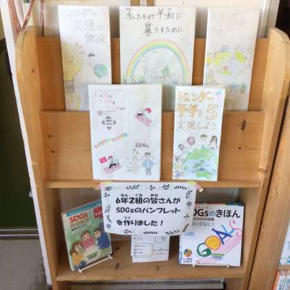 ビンゴカードやクイズに参加できる企画もあります。6年生が総合的な学習で作ったSDGsのパンフレットも展示されています。図書委員のみなさん、読書活動が盛り上げる楽しい企画をありがとうございます。