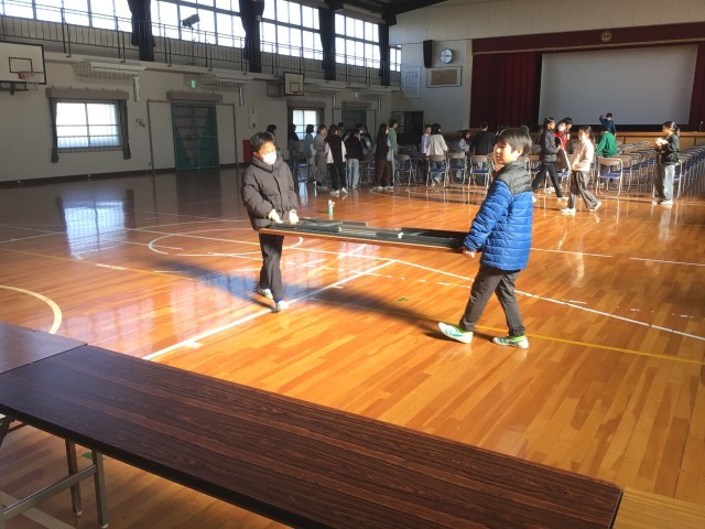 明日の入学説明会の会場準備を5年生が行いました。5年生は、4月に新1年生を迎えて最高学年となります。そのための意識を高めるよい機会となりました。5年生のみなさん、会場準備ありがとうございます。