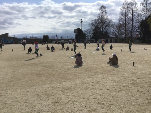 縄跳びの授業です。納め会でチャレンジする種目で、自己記録の更新を目指して練習しています。