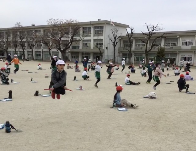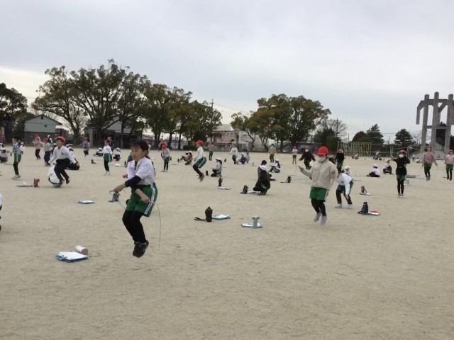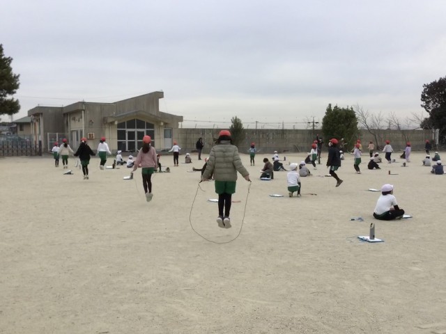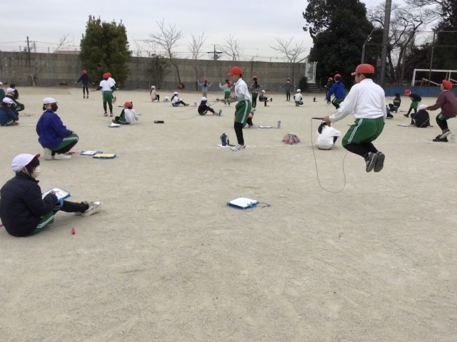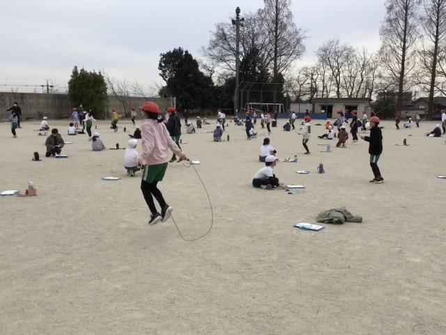 先週に行われた縄跳び納め会の様子です。赤、白にわかれて回数チャレンジ、時間チャレンジを交互に行いました。二重跳びで回数チャレンジが成功した児童に、「すごいね!」と声をかけている児童もいました。