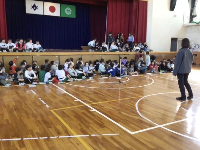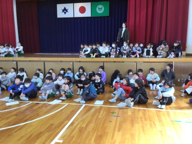 卒業を祝う会の学年の出し物の練習をしています。6年生に、感謝の気持ちを元気よく伝えます。