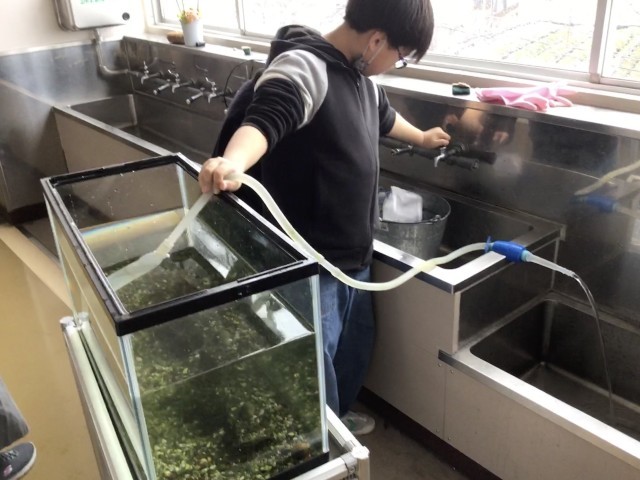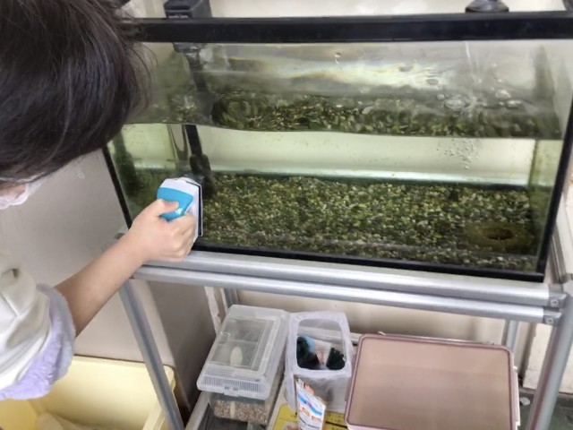 1年間、飼育しているメダカの水槽の手入れをしています。メダカが快適に暮らせるためのお世話を通して、命を大切にする心が育くまれています。寒さに負けずに元気に泳ぐメダカを見て、自分もエネルギーをもらえます。