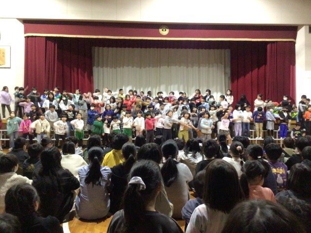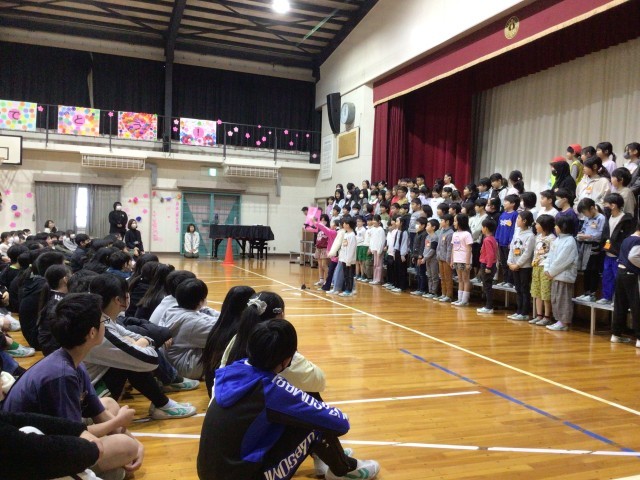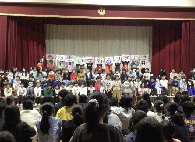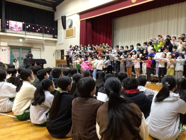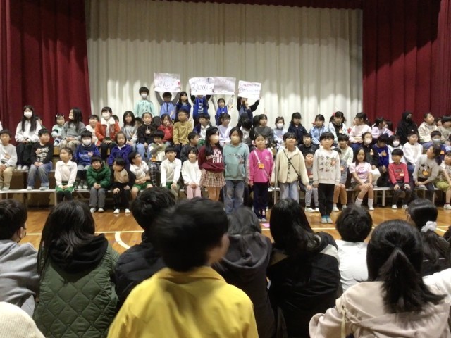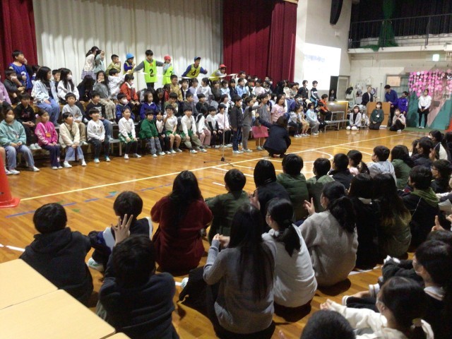2年生は6年生の小学校生活を「ターイムスリップ!!」して、クイズと歌で感謝の気持ちを伝えました。