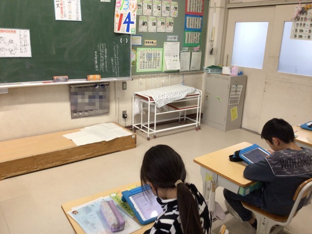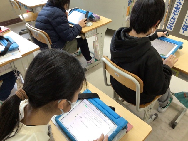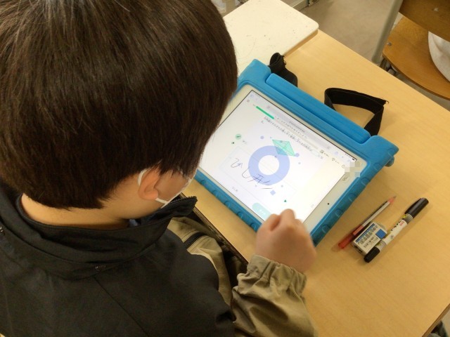 学習用タブレットのAIドリルを使って、算数の文章問題や図形の問題の復習を復習しています。正答率やどのくらいの時間がかかったかを分析することもできます。