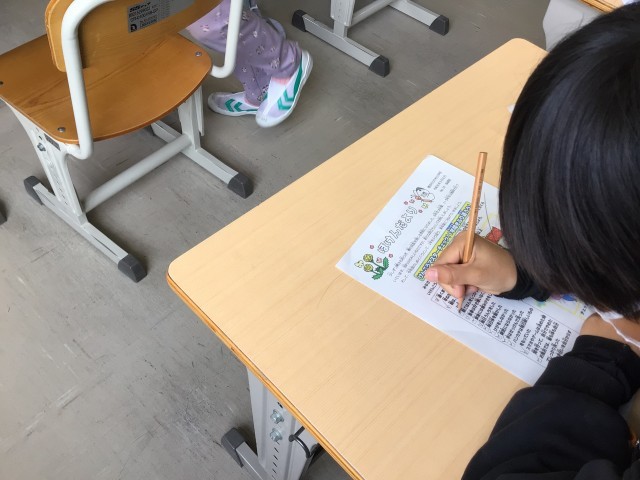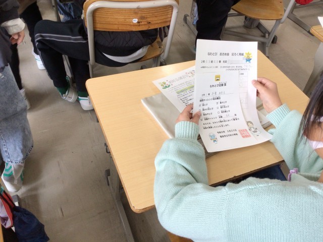 朝の会で、配付物が配られています。今日は、縄跳び納め会の記録賞や保健だよりが配られました。保健だよりには「けんこうマスター チェック」が掲載されており、さっそくチェックして自分を振り返っている児童もいました。ご家庭でもご覧ください。(なわとび記録賞、保健だよりは全学年で配付します)