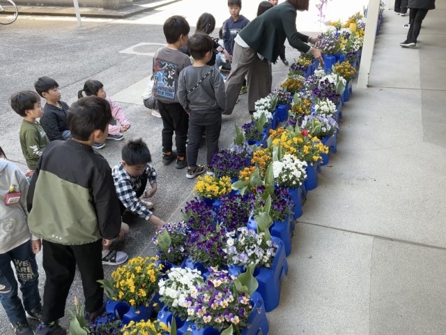 連絡帳の書き方を再確認したり、通学団会の場所を確認したり、入学式で飾った自分の鉢花を移動したりしました。