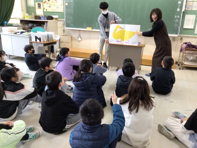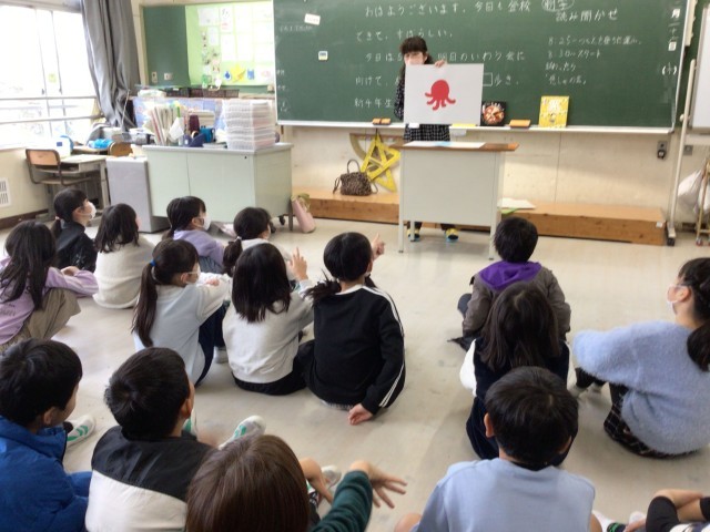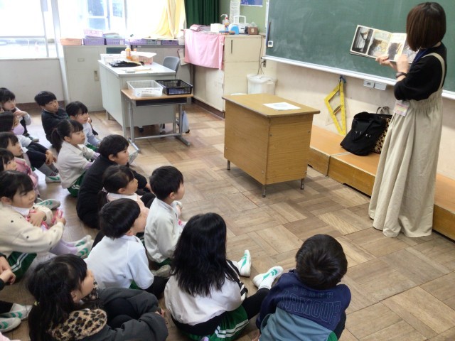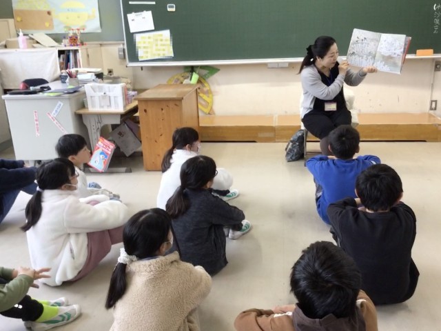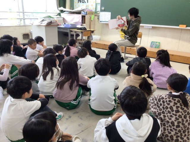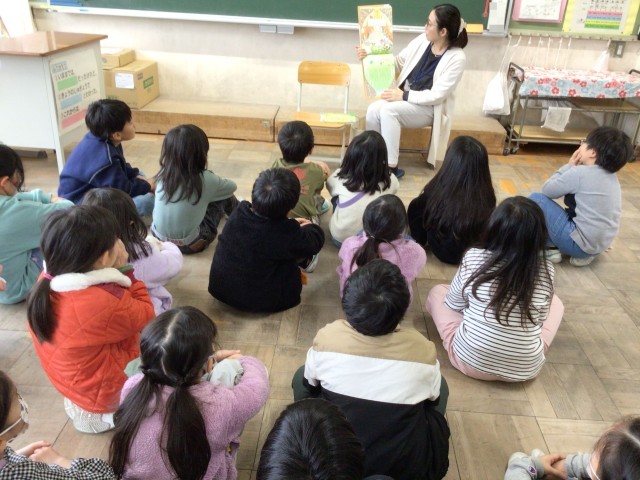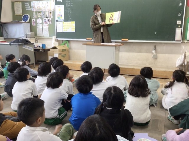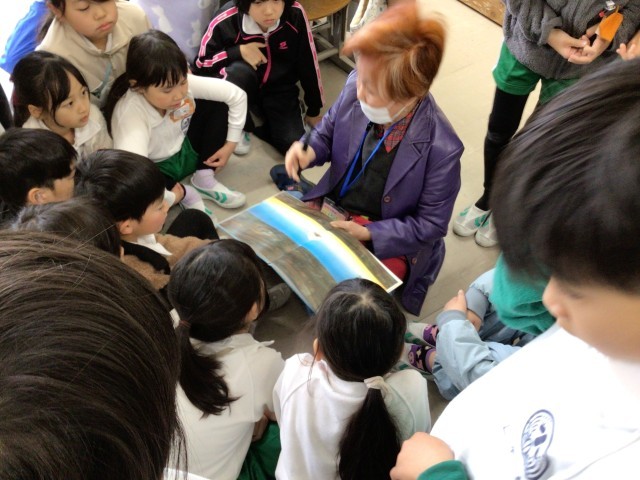 他学年は、教室での読み聞かせをしていただきました。絵本を囲んで、読み聞かせをしていただいている学級もありました。「赤ずきんちゃん」の皆様、ありがとうございます。