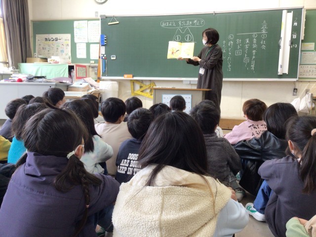 どの学級でも、読み聞かせボランティアの「赤ずきんちゃん」の読み聞かせに児童たちは聴き入っていました。