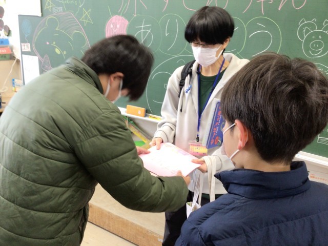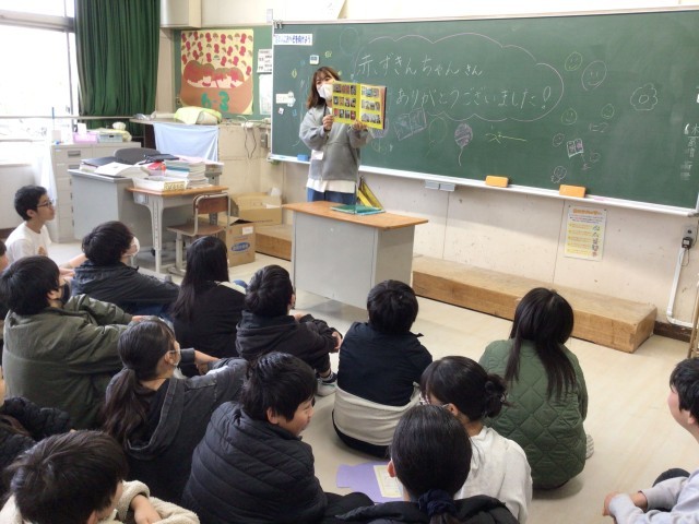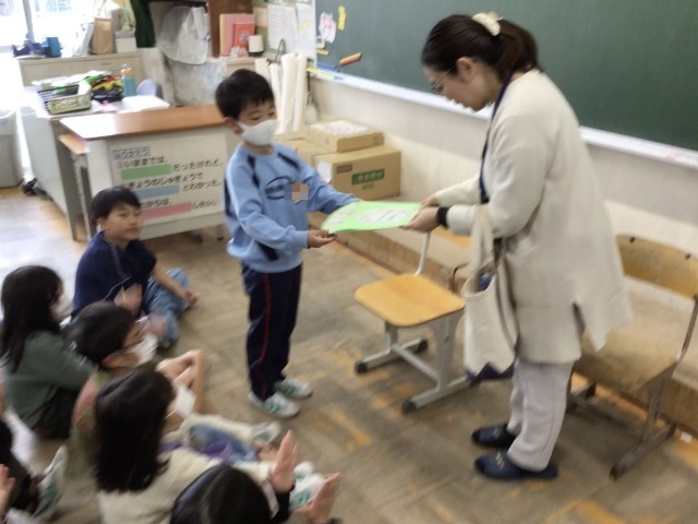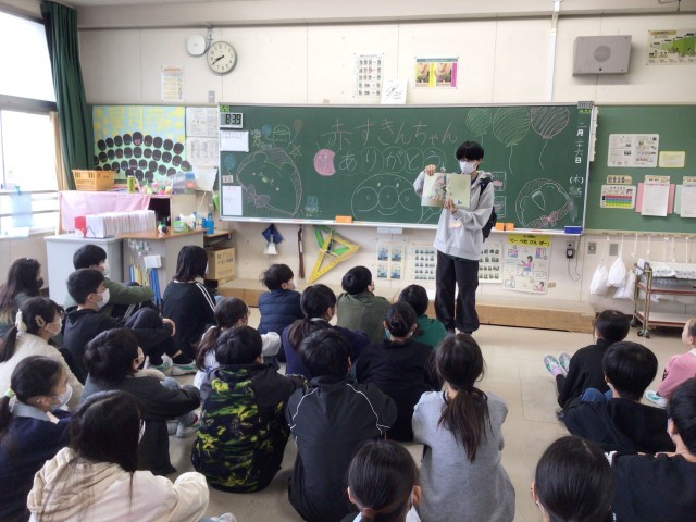 読み聞かせの終わりに、各学級で「赤ずきんちゃん」の方々へ感謝の言葉とメッセージを贈りました。赤ずきんちゃんの皆様、児童たちにたくさんの物語の楽しさを聞かせていただき、ありがとうございました。