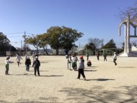 前片足跳びの練習です。ペアで、何回跳べたかを数えています。縄跳び納め会では、練...