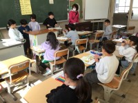 説明文の学習です。子どもを守る動物たちの行動について読み取り、発表をしました。
