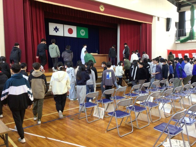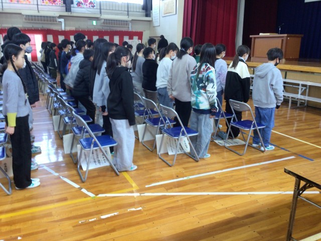 在校生の代表という気持ちをもって、明日の式に参加します。午前中は、所作や送ることば、歌練習を行いました。午後からの会場作りでも、頑張って活動する5年生の姿が多く見られました。明日は、よい式になります。
