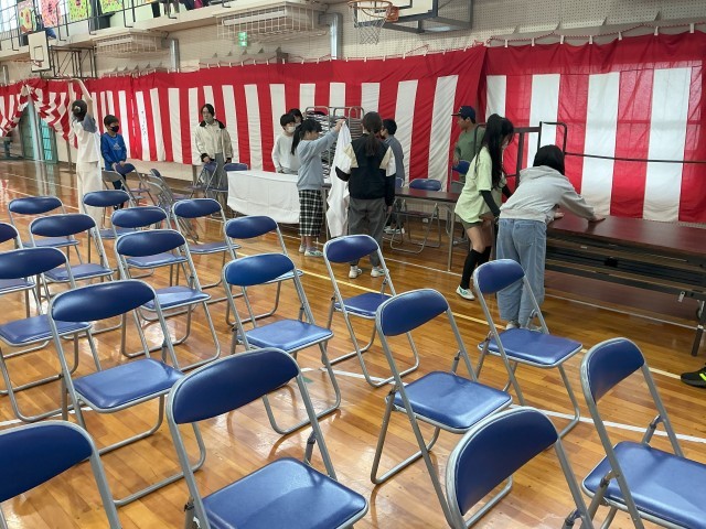 在校生の代表という気持ちをもって、明日の式に参加します。午前中は、所作や送ることば、歌練習を行いました。午後からの会場作りでも、頑張って活動する5年生の姿が多く見られました。明日は、よい式になります。