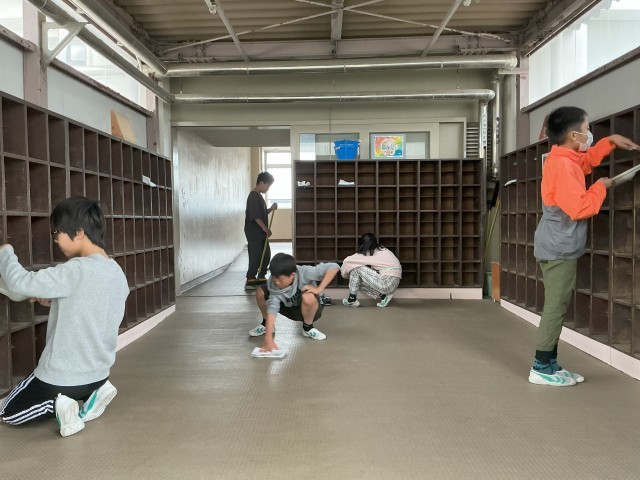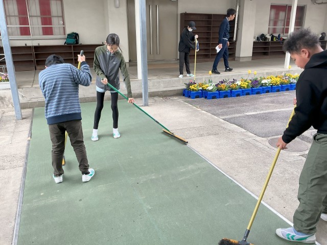 各学級での学級納めの後、1年間過ごした教室への感謝の気持ちを込めて、また、次に使う人たちが気持ちよく使えるように掃除をしました。教室も心も磨いて、今年度の節目としました。