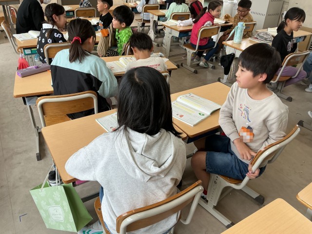 好きなことや得意なことを尋ねる授業です。始めに「何」「どうして」「どこ」「なぜ」「だれ」「どんな」「いつ」「どっち」「どこで」など、質問で使える言葉を考えました。その後、ペア学習で質問に答えたり、答えに関する追加の質問をしたりしていました。新しい学級の仲間のことを知る機会にもなりました。