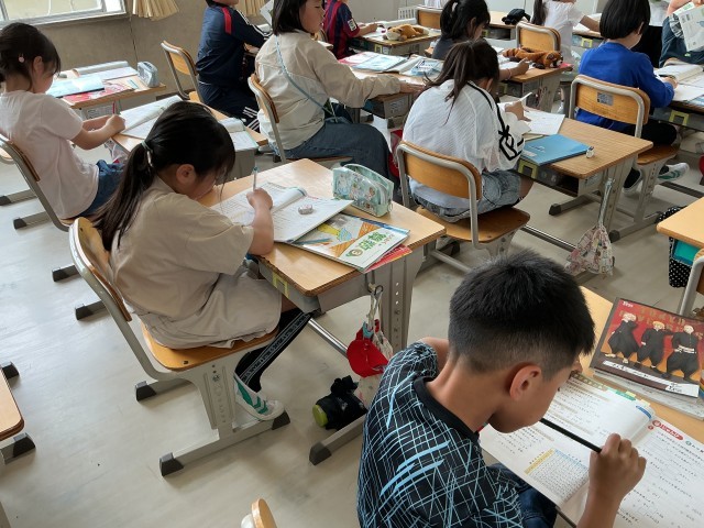 「一人音読をして、一言感想を書こう」の授業です。一言感想といっても、「楽しかった」「おもしろかった」という一言ではなく、好きなところや気になるところ、おもしろいところを具体的に膨らませて書き、担任の先生に見てもらっていました。