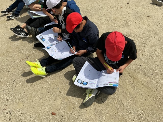 天気は雲の量で決まることを学びました。後半は運動所で空を観察して雲のようすを記録し、今の天気は「腫れ」なのか「くもり」なのかを考えました。