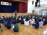 学年集会で、今後の学年の活動について話をしています。もうすぐ卒業を迎える6年生...