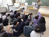 紙芝居や縦長にして読む絵本のお話もあり、児童たちは興味深く聴いていました。英語...