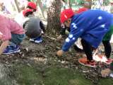 児童たちはどんぐりを拾ったり、池や植物を観察して自然に親しみました。児童が見せ...
