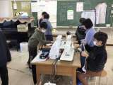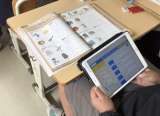 学習用タブレットを使った学習です。タブレットから聞こえてくる英語のスピーチを聞...