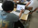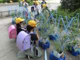 1年生が登校後に、アサガオの水やりをしています。自分のアサガオが枯れてしまわな...