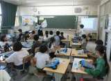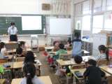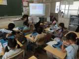 1年生の食育です。担任と栄養教諭の先生といっしょに、給食ができるまでを学び、給...