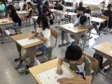 単元テスト「角度とその大きさ」の問題を集中して解いています。あきらめずに考え抜...