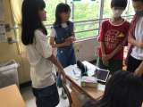 英語で自分の行きたい国を紹介し、それを聞いて英語で感想を答えるペアでの発表です...