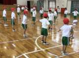 体育館で、体操を学んでいます。見に行ったときには、「アンテナ」のポーズを練習し...